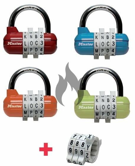 4 db Master Lock 1534EURD vízszintes kombinált lakat készlet 64 mm szélességgel. A zár acélból készült . Ellenáll a sérüléseknek . A Master Lock 6 biztonsági osztályba tartozik. Biztosítsa ingatlanát zárral, a 7 mm átmérőjű edzett acél kengyel ellenáll a vágásnak . A zár állítható 4-jegyű szám- és betűkombinációját tartalmazza. A fogantyúkat a kombináció eg