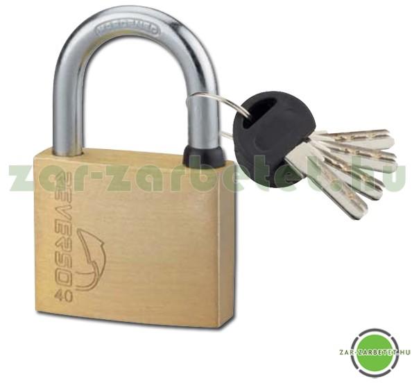 Polírozott sárgaréz lakat, edzett krómozott acél kengyellel, kettős reteszeléssel. A lakathoz tartozik még 4 db szimmetrikus acélkulcs, melyek a legtöbb lakatkulcstól eltérően pontfúrtak. A lakat kültéri, fokozottan ellenáll az időjárás viszontagságainak. Lakatkulcs nélkül is visszazárható a lakat, ezt az ugrókengyel teszi lehetővé. Főbb méretei: szélessége: 40 mm t