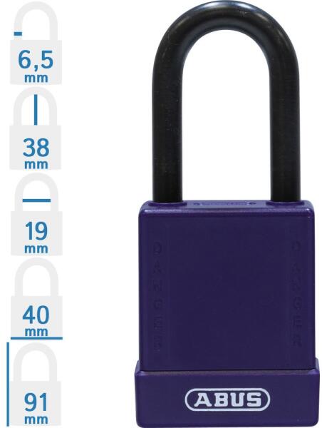 ABUS 76/40 LOTO munkavédelmi kizáró lakat (méret: lásd a képen): speciális ötvözetű Abus lakat, műanyag bevonatú kengyellel, kétoldali golyós reteszeléssel. Az ABUS 76/40 LOTO munkavédelmi kizáró lakat 10 különböző színben rendelhető! Minőségi ABUS zárbetét, 1 db kulcs/lakat. A lakat test mélysége: 22 mm. Szigetelt, különösen hőálló – forró és elektromos kö