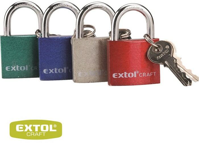 Biztonsági vas lakat Edzett acél csap Extol Craft biztonsági vas lakat edzett acél csappal. Különféle színekben. Kulcs használata nélkül, kattintással zárható.