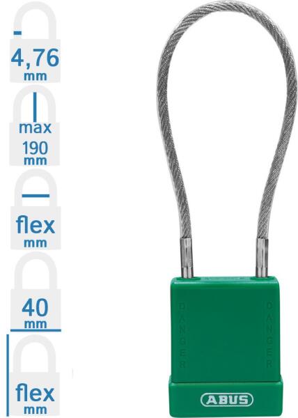 ABUS 76/40 CAB40 LOTO munkavédelmi kizáró lakat flexibilis, kábeles kengyellel (méret: lásd a képen): speciális ötvözetű Abus lakat, műanyag bevonatú kábeles kengyellel. Az ABUS 76/40 CAB40 LOTO munkavédelmi kizáró lakat 10 különböző színben rendelhető! Minőségi ABUS zárbetét, 1 db kulcs/lakat. A lakat test mélysége: 22 mm. Szigetelt, különösen hőálló – forró