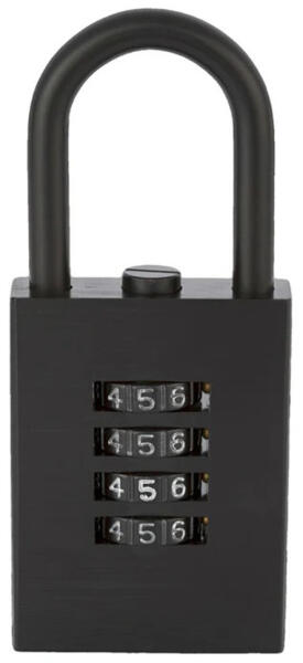 biztonsági számzáras lakat robusztus öntvény lakat test edzett acél kengyel és belső szerkezet 4 tárcsás mechanikus kombinációs zár átkódolható számkombináció 10.000 elméleti kódvariáció könnyen járó számgörgők kimagasló korrózióvédelem kül- és beltéri használatra egyaránt