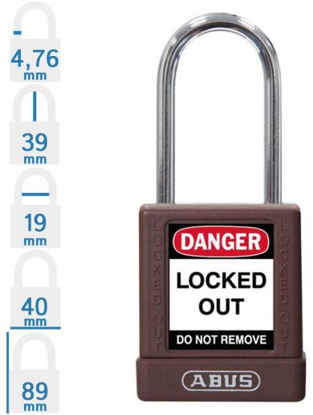 ABUS 74BS/40 LOTO munkavédelmi kizáró lakat (méret: lásd a képen): speciális ötvözetű Abus lakat kétoldali golyós reteszeléssel. Acél kengyel, 20 mm-es lakat test mélység. Az ABUS 74BS/40 LOTO munkavédelmi kizáró lakat 10 különböző színben rendelhető! Minőségi ABUS zárszerkezet, 1 db kulcs/lakat. Szigetelt, különösen hőálló – forró és elektromos környezetben