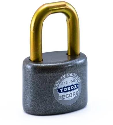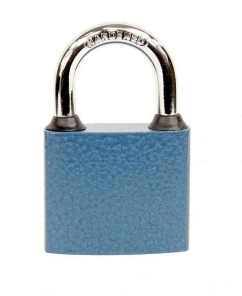 Kék Öntöttvas lakat "HARDENED" kengyellel. Kulcs nélkül zárható - a kengyel megnyomásával. 3db réz kulccsal