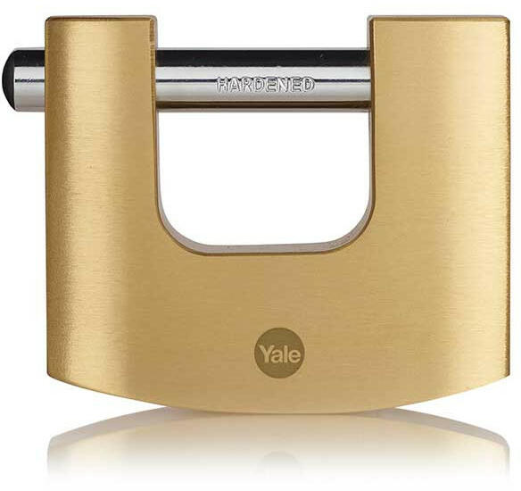 Yale-Y114B/90/127/1 réz tömb lakat masszív sárgaréz lakattest edzett acél kengyel kettős reteszeléssel korrózióálló belső szerkezet nagy szakítószilárdság EN 12320 szerinti III biztonsági osztály maximális védelem kengyellevágás fúrás, maghúzás és finomnyitás ellen 96 óra korrózióállósági garancia szélsőséges időjárási viszonyok között tesztelve precízi
