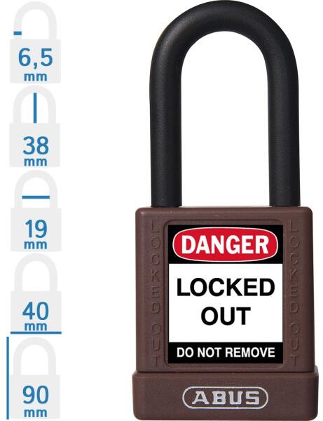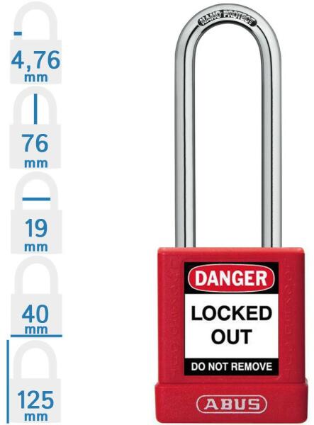 ABUS 76/40 LOTO munkavédelmi kizáró lakat (méret: lásd a képen): speciális ötvözetű Abus lakat, műanyag bevonatú kengyellel, kétoldali golyós reteszeléssel. Az ABUS 76/40 LOTO munkavédelmi kizáró lakat 10 különböző színben rendelhető! Minőségi ABUS zárbetét, 1 db kulcs/lakat. A lakat test mélysége: 22 mm. Szigetelt, különösen hőálló – forró és elektromos kö