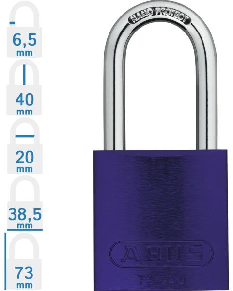 ABUS 72/40HB40 LOTO munkavédelmi kizáró lakat (méret, adatok: lásd a képen): speciális ötvözetű Abus lakat kétoldali golyós reteszeléssel. Edzett acél kengyel, 19 mm-es lakat test mélység. Az ABUS 72/40HB40 LOTO munkavédelmi kizáró lakat 7 különböző színben rendelhető! Minőségi ABUS zárbetét, 2 db kulcs. A németországi Abus által képviselt minőség és biztonság
