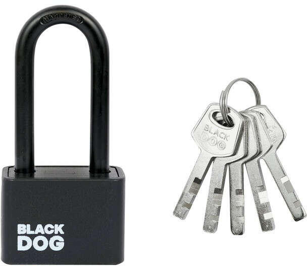fekete Acél lakat műanyag takaróval. Kültérre is alkalmas Hosszított (PL) Standard kengyel HARDENED, kétoldalú reteszelésselZárbetét 6 lamellávalKulccsal zárhatóA csomag 5db kulcsot tartalmazSúly nettó: 0,24 kgSzín : fekete