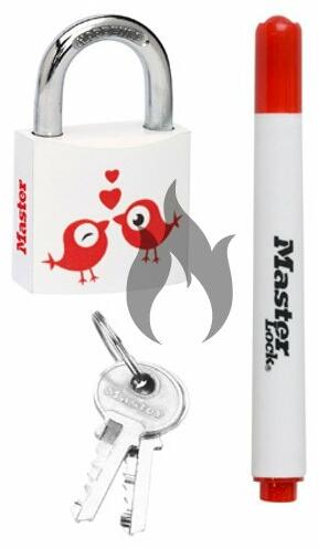 Master Lock 3430EURDLOV lakat 30 mm széles nyomattal. A zár tömör alumíniumból készült . Ellenáll a sérüléseknek és a korróziónak. A Master Lock 4 biztonsági osztályba tartozik. Biztosítsa ingatlanát zárral, az 5 mm átmérőjű acél kengyel ellenáll a vágásnak. Tartalmaz egy betétet 4 pohárral. A csomag 2 kulcsot és egy jelölőt tartalmaz. Ajánljuk a Master Lock cég