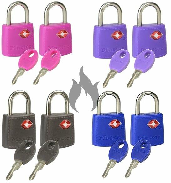 2 db Master Lock 4695EURTAST lakat készlet 23 mm szélességgel . A zár könnyű ABS műanyagból készült , és TSA jóváhagyással rendelkezik. A Master Lock 3. biztonsági osztályba tartozik. Biztosítsa ingatlanát egy 3 mm átmérőjű acél kengyellel , amely ellenáll a vágással és vágással szemben . A zárak 4 színváltozatban kaphatók - kék, lila, rózsaszín és sötétszür