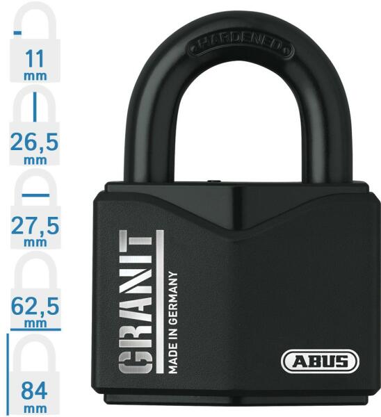 Abus Granit 37/55 biztonsági acél lakat. Minőségi Abus Plus lamellás zárbetét, 2 db kulccsal. Masszív lakatház; edzett acél kengyel, kettős, golyós reteszelés. Kulcsmásolás kódkártyával. Lakat test mélység: 31 mm. ABUS Plus lamellás zárszerkezet: Maximális védelem a manipulációval szemben, különösen magas zárlati variáció Edzett, speciális acélból készült test