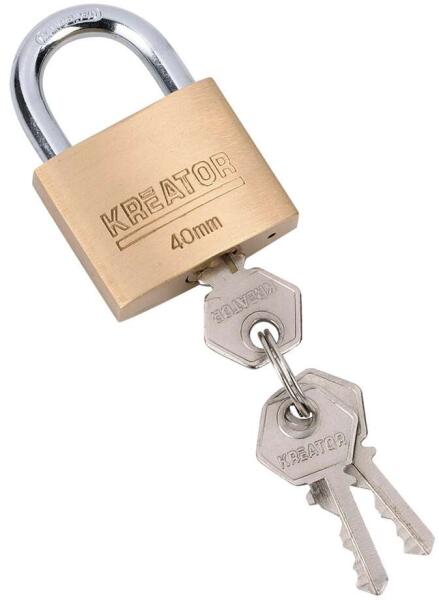 Kreator lakatMéret: 40 mmAcél bilincsHenger zárbetét anyaga: sárgaréz3 db kulcs
