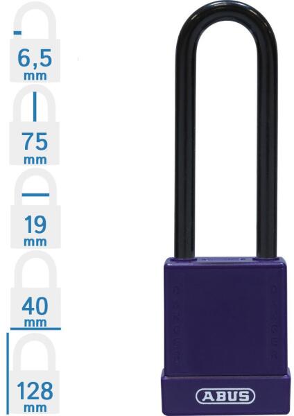 ABUS 76/40HB75 LOTO munkavédelmi kizáró lakat (méret: lásd a képen): speciális ötvözetű Abus lakat, műanyag bevonatú kengyellel, kétoldali golyós reteszeléssel. Az ABUS 76/40HB75 LOTO munkavédelmi kizáró lakat 10 különböző színben rendelhető! Minőségi ABUS zárbetét, 1 db kulcs/lakat. A lakat test mélysége: 22 mm. Szigetelt, különösen hőálló – forró és elektr