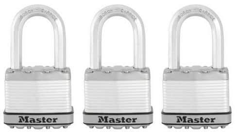 4 db Master Lock 1503EURD kombinációs lakat készlet 48 mm szélességgel. A zár rozsdamentes acélból készült . Ellenáll a sérüléseknek . A Master Lock 6 biztonsági osztályba tartozik. Biztosítsa ingatlanát zárral, a 7 mm átmérőjű edzett acél kengyel ellenáll a vágásnak . Előre beállított 3 számjegyű kombinációs zárat tartalmaz. BlockGuard alátétvédelemmel is ren