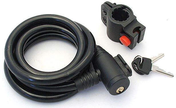 Kulcsos spirál zár 12 mm vastag és 1500 mm hosszú, tartóval.