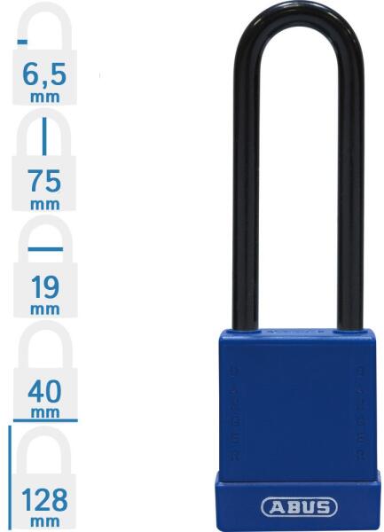 ABUS 76/40HB75 LOTO munkavédelmi kizáró lakat (méret: lásd a képen): speciális ötvözetű Abus lakat, műanyag bevonatú kengyellel, kétoldali golyós reteszeléssel. Az ABUS 76/40HB75 LOTO munkavédelmi kizáró lakat 10 különböző színben rendelhető! Minőségi ABUS zárbetét, 1 db kulcs/lakat. A lakat test mélysége: 22 mm. Szigetelt, különösen hőálló – forró és elektr