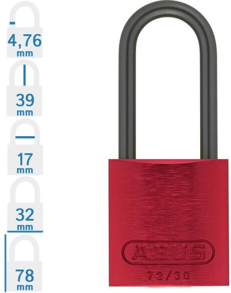 ABUS 72AS/30HB38 LOTO munkavédelmi kizáró lakat (méret, adatok: lásd a képen): speciális ötvözetű Abus lakat kétoldali reteszeléssel. Acél kengyel, 16 mm-es lakat test mélység. Az ABUS 72AS/30HB38 LOTO munkavédelmi kizáró lakat 8 különböző színben rendelhető! Minőségi ABUS zárbetét, 2 db kulcs. A németországi Abus által képviselt minőség és biztonság minden zár
