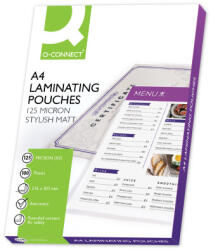 Q-Connect kiváló minőségű, matt, standard laminálófólia professzionális megjelenésű dokumentumokhoz. Antisztatikus , nem tükröződő . Ideális névjelvényekhez, névjegykártyákhoz. formátum: A4 . Méret: 216 x 303 mm . Vastagság: 125 mikron . Kiszerelés: 100 db/csomag . .