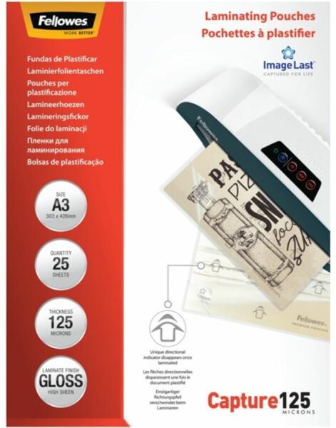 - Méret: A3 - Vastagság: 175 mikron - Felület: fényes - Védelem szintje: prémium - Alkalmazható pl. értesítések, fényképek, tanúsítványok, menük laminálására, továbbá hobbi és kézművesség területen - Kiszerelés: 100 db/csomag - A tökéletes végeredmény és a kiemelkedő megbízhatóság érdekében Fellowes® laminálógépekhez mindig használjon Fellowes® laminál