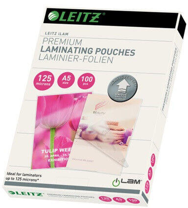 Meleglamináló fólia, 125 mikron, A5, fényes, UDT technológiával, LEITZ "iLam" - E74930000 - Meleglamináló fóliák - - egyszerűen használható, elakadásmentes meleglaminálás az UDT fóliákkal - a különleges prémium minőségű fóliák tökéletes védelmet biztosíta