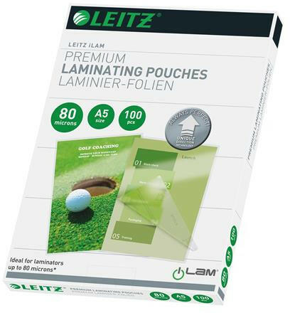 Meleglamináló fólia, 80 mikron, A5, fényes, UDT technológiával, LEITZ "iLam" - egyszerűen használható, elakadásmentes meleglaminálás az UDT fóliákkal - a különleges prémium minőségű fóliák tökéletes védelmet biztosítanak a szennyeződések, folyadékok és a pára ellen - könnyű fóliabehelyezés a Unique Direction Technology segítségével - a helyes irányt mutató n