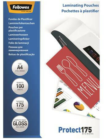 - Méret: A4 - Vastagság: 80 mikron - Felület: fényes - Védelem szintje: alap - Alkalmazható pl. értesítések, fényképek laminálására - Kiszerelés: 250 db/csomag - A tökéletes végeredmény és a kiemelkedő megbízhatóság érdekében Fellowes® laminálógépekhez mindig használjon Fellowes® lamináló fóliákat!