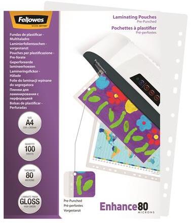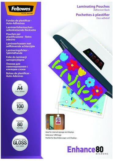 Lamináló fólia FELLOWES A/4 80 mikron fényes öntapadó 100/csom - Méret: A4 - Vastagság: 80 mikron - Felület: fényes - Speciális típus: öntapadó hátlappal rendelkezik - Védelem szintje: alap - Alkalmazható pl. értesítések, fényképek laminálására - Kiszerelés: 100 db/csomag - A tökéletes végeredmény és a kiemelkedő megbízhatóság érdekében Fellowes® laminálógé