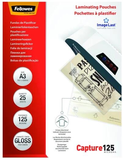 - Méret: A3 - Vastagság: 125 mikron - Felület: fényes - Védelem szintje: fokozott - Alkalmazható pl. értesítések, fényképek, tanúsítványok laminálására, továbbá hobby és kézművesség területen - Kiszerelés: 25 db/csomag - A tökéletes végeredmény és a kiemelkedő megbízhatóság érdekében Fellowes® laminálógépekhez mindig használjon Fellowes® lamináló fóliá