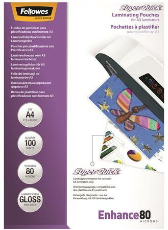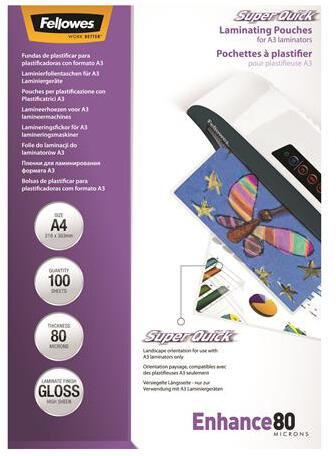- A laminálás 40%-al gyorsabb Fellowes SupreQuick lamináló fólia használatával - A fólia összeillesztése a hosszabbik oldalán található, tökéletes magas hőmérsékletű lamináláshoz, így kizárólag A3 vagy nagyobb munkaszélességű laminálógépekkel használható! - Ideális: értesítések, fényképek, gyakran kezelt dokumentumok laminálására