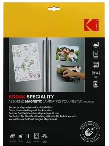Lamináló fólia KODAK mágneses. Kiszerelés: 10 ív/csomag. Csomag tartalma: 10x15 cm - 4 db13x18 cm - 3 dbA4 - 3 dbFólia vastagság: 150 mikron.