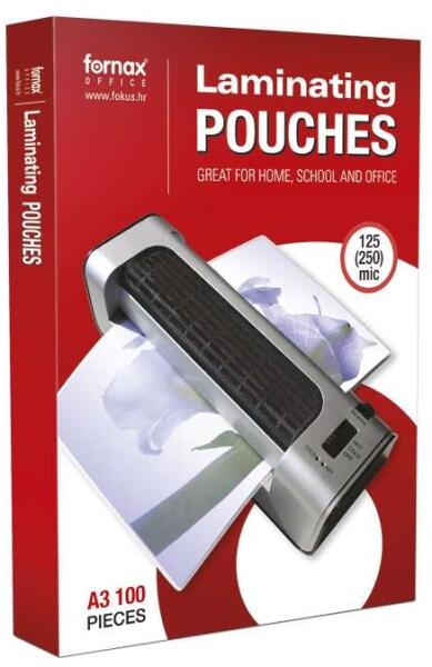 Lamináló fólia A3, 125 micron ( 303x426mm) 100 db/doboz, FornaxMéret: A3, felülete fényes Vastagság: 125 micron Kiszerelés: 100 db/doboz, 10doboz/karton Katalóguskód: 23149
