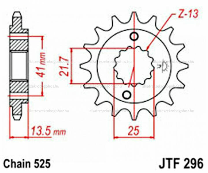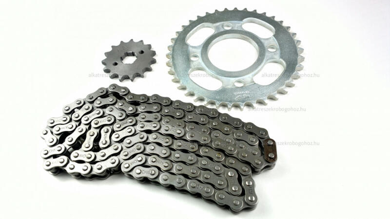 Első lánckerék: Fogak száma 14db Tengely átmérő 14/17mm Vastagság 6mm Lánckerék teljes átmérője 61mm Felfogtatási furatközép 30mm Hátsó lánckerék: Fogak száma 36 Felfogatási furatközép egymással szemben lévő furatoknál 70mm Felfogatási furatközép egymás mellett lévő furatoknál 50mm Belső lyuk átmérő 54mm Vastagság 6mm Lánckerék teljes átmérője 150mm Fel