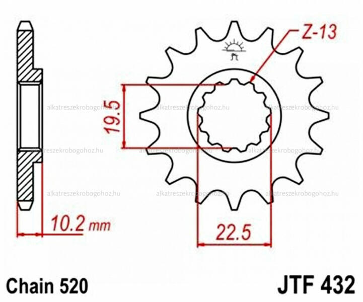 Fogak száma : 17 Belső átmérő 18 / 22mm Felfogatási lyukak közötti távolság 35.5mm Felfogatás típus 2db 6mm csavar Kérjük vásárlás előtt érdeklődjön a termék raktárkészletéről.