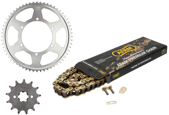 Első lánckerék sárkidobós JTF 1901SC. 14 - hátsó lánckerék acél JTR 897.50 - DID Japan meghajtólánc 520. VX3.120 X-gyűrűs, 100 LE-ig - lánc hossz: vagy a gyári, vagy annál hosszabb láncot szállítunk, a lánc levágható a kívánt hosszra - az itt jelzett gyári áttételtől bármilyen eltérő fogszámú lánckereket is tudunk szállítani. Biztosítani tudjuk bármely európ