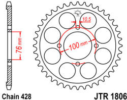 1806.56-JTR hátsó lánckerék acél-JTR acél hátsó lánckerék, JT SPROCKETS. Az ajánlott fogszámtól elérõt is rendelhetsz, ha szükséges, bátran kérd kollégánk szakmai tanácsát e-mailen vagy telefonon. -- A JT Sprockets az ipar No. 1 lánckerék gyártója. A DID Japan meghajtó láncok a legkiválóbb minõséget és rendkívül hosszú élettartamot garantálják. Létrehoztunk