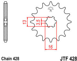 428.16-JTF elsõ lánckerék-JTF elsõ lánckerék, JT SPROCKETS. Az ajánlott fogszámtól elérõt is rendelhetsz, ha szükséges, bátran kérd kollégánk szakmai tanácsát e-mailen vagy telefonon. -- A JT Sprockets az ipar No. 1 lánckerék gyártója. A DID Japan meghajtó láncok a legkiválóbb minõséget és rendkívül hosszú élettartamot garantálják. Létrehoztunk egy DID JT keres