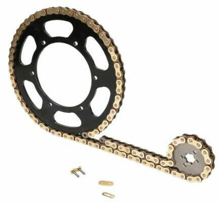 Első lánckerék sárkidobós JTF 1901SC. 13 - hátsó lánckerék acél, fekete JTR 897.52ZBK - DID Japan meghajtólánc 520. VX3.120-GOLD X-gyűrűs, 100 LE-ig, aranyozott - lánc hossz: vagy a gyári, vagy annál hosszabb láncot szállítunk, a lánc levágható a kívánt hosszra - az itt jelzett gyári áttételtől bármilyen eltérő fogszámú lánckereket is tudunk szállítani. Biztos