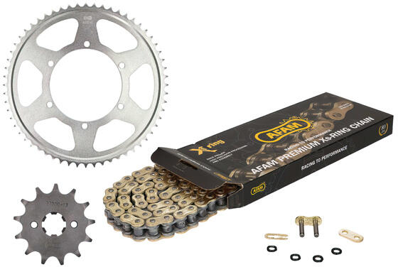 Első lánckerék JTF 1127.13 - hátsó lánckerék acél JTR 1131.53 - DID Japan meghajtólánc 420. VO. 130 O-gyűrűs - lánc hossz: vagy a gyári, vagy annál hosszabb láncot szállítunk, a lánc levágható a kívánt hosszra - az itt jelzett gyári áttételtől bármilyen eltérő fogszámú lánckereket is tudunk szállítani. Biztosítani tudjuk bármely európai vagy japán motorod lá