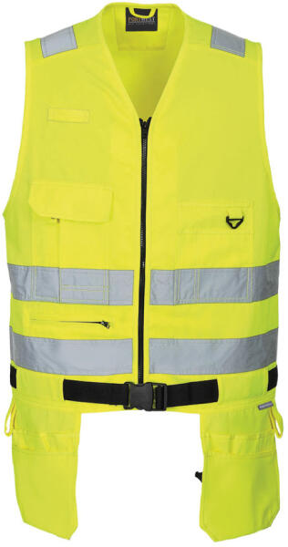 Sokzsebes mellény modellünk kombinálja a modern stílust a strapabíró EN ISO 20471 minősített anyaggal. Dupla varrásokkal, azonosító tartóval, derékövvel és többfunkciós zsebekkel készül. Több zseb kínál biztonságos tárolást. Tartós poliészter/pamut szövet, mely nagy teljesítményt és maximális viselési komfortot biztosít Fényvisszaverő szalag a fokozott látható