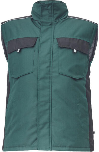 Cipzáras férfi téli mellény Cerva Max Neo munkavédelmi téli mellény zöld színben: 100% poliészter anyagösszetétel Szélálló, vízálló 2 oldalsó zseb, 2 mellzseb, 1 mobiltartó Reflex elemekkel ellátott