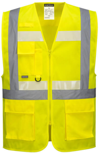 Warsaw Vezetői mellény gyártó: Portwest cikkszáma: C476 A termék megfelel az EN ISO 20471:2013 Class 1 szabványnak. 100 % poliészter A Portwest C476 Warsaw Vezetői mellény igazolvány tartó zsebbel, több funkciós zsebekkel készül. A rádió hurok szintén fontos kiegészítő, kényelmesen rögzíthető hozzá a rádió. Ideális úton dolgozók köztereken dolgozók számára. EN I