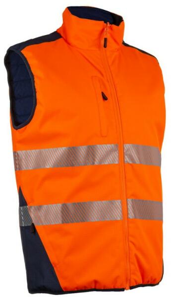 Férfi jólláthatósági meleg mellény, kapucnival narancs színben. Cerva Cordoba jólláthatósági bélelt mellény narancs színben. Hi-Vis bélelt férfi mellény, gallérba rejthető kapucnival; 5 cm széles fényvisszavető csíkok; cipzáras, patentos hajtókával; telefonzseb; 2 nagy első zseb hajtókával, és két cipzáras zseb.