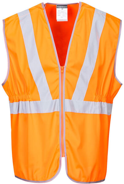 Speciális biztonsági mellény vasúti használatra. cipzáros záródás, gumírozott hátsó kialakítás