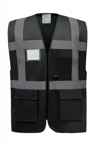 Uniszex ujjatlan Biztonsági mellény munkaruha Yoko Fluo Executive Waistcoat L, Fekete Leírás: 125 g/m2 100% poliészter védőmellény vízszintes és függőleges fényvisszaverő csíkkal elöl és hátul tépőzáras mobiltartó zseb kulcs- és igazolvány tartó a mellrészen két tépőzáras oldalzseb cipzárral záródik. Figyelem! (Az anyag magas hőfokon hamarabb amortizálódik. ) Id