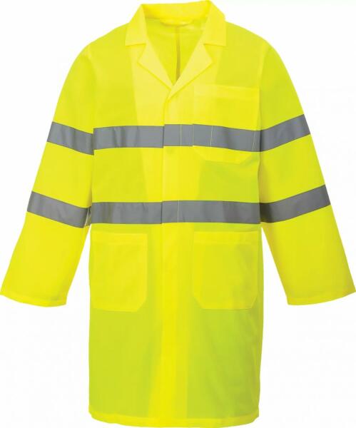 Klasszikus stílusú jól láthatósági köpeny megoldás praktikus zsebekkel, patentos záródással. Kényelmes és sokoldalú. Alapanyag: 100% poliészter, 135 g. Szín: sárga Méret: S - XXL