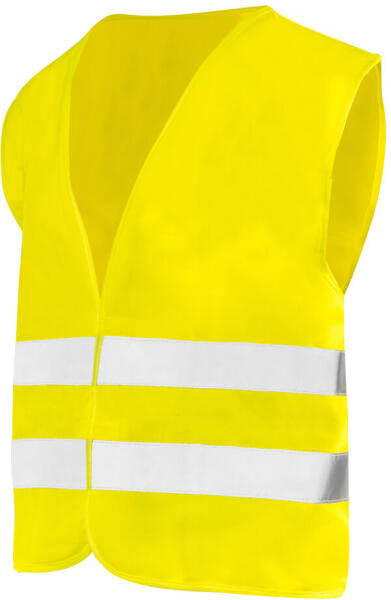 A fényvisszaverő mellény 100% poliészterből készült. Két vízszintes, 5 cm széles fényvisszaverő csíkkal rendelkezik. Ezáltal viselője tökéletesen láthatóvá válik a sötétben. Minden mellény tépőzáras rögzítéssel rendelkezik. Megfelel a CE EN ISO 20471 szabványnak. Méret L. Jellemzők:100% poliészterSúly120g /m2Két széles fényvisszaverő csíkEgyénivédőfelszer
