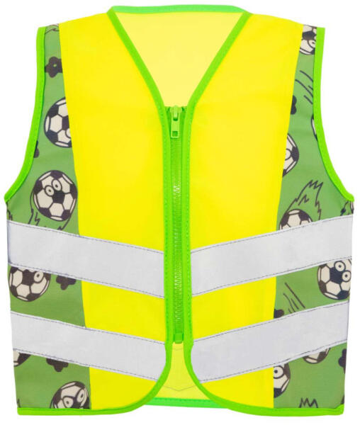 CHILDREN’S SAFETY VEST (CO2 NEUTRAL) - ACTION Motives: Sports, Aerospace, Fantasy Certified according to EN 17353:2020 Type B3 (Alien, Construction, Plane, Monster truck, Knight, Road Works, Tractor) Certified according EN 17353:2020 Type AB3 (Soccer, Ice Hockey, T-Rex, Brachiosaur, UFO, Unicorn) High visibility due to patterned fabric with reflective coating and reflective strips Lightweight 10