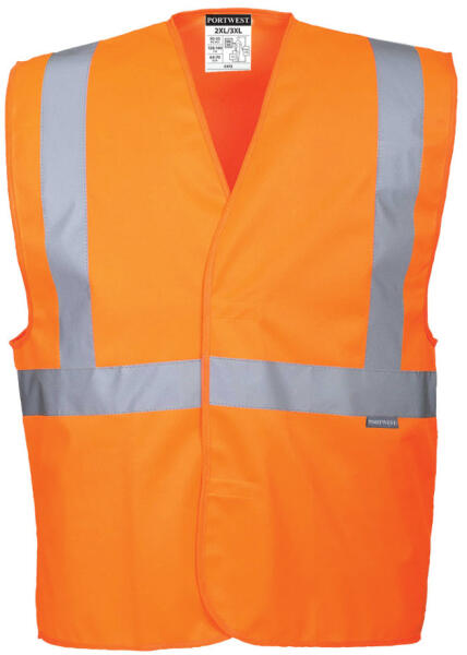 Megegyezik a C470 típussal, a mellrészen egy jól láthatósági csíkkal. Könnyű és kényelmes Fényvisszaverő szalag a fokozott láthatóságért Tépőzáras záródás az egyszerű hozzáférésért Bő kialakítás, mely extra komfortot biztosít viselőjének EN ISO 20471 szabvány szerint 50 mosásra minősítve Megfelel az RIS 3279-TOM vasúti szabványnak(csak a narancs szín) CE mi