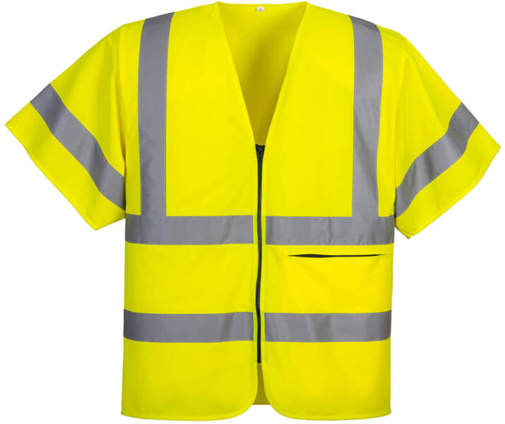 Rövid ujjú cipzáras mellény a további magas láthatósági védelemért, miközben hűvösen tartja a viselőjét. Könnyű alapanyagot és HiVisTex fényvisszaverő szalagot használ. Elülső cipzárral és egy cipzáras táblagépzsebbel, amelybe tok nélkül akár 10,5"-es méretű táblagépek is beférnek. Könnyű és kényelmes Külső tablet zseb a biztonságos tárolásért Bő kial