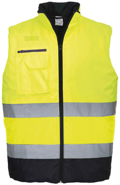 Jól láthatósági kifordítható mellény gyártó: Portwest cikkszáma: S469 A termék megfelel az EN471 class 2:2, GO/RT 3279 szabványnak. Bélelt mellény, mely melegen tart mindkét viselési mód esetén. A láthatósági oldal szükség esetén extra biztonságot nyújt a munkavégzéshez 100% Poliészter, 300D Oxford szövés, folttaszító bevonattal, PU bevonattal, 190g 65 % Poliészte